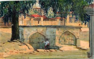 Кноб рисува чешма, построена през 1646 година със спомоществувателството на княза на Молдова. Тя е преместена при регулацията на ул. „Богданова“ (ул. „Княз Дондуков“).