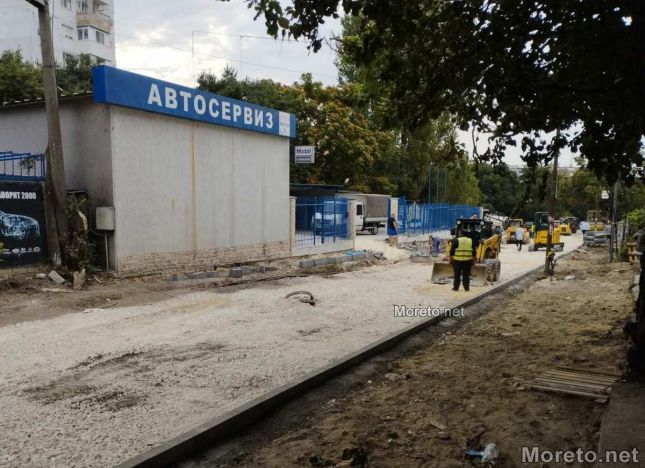 Дейностите по подмяна на настилката и оформянето на нови тротоари текат с пълна сила, но все още са далеч от приключване, видя репортер на Moreto.net.