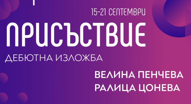 Още две млади художнички поемат по траекторията на творческия успех на 15 септември, петък, от 18 ч. във Варна. Дебютната изложба „Присъствие“ на Велина Пенчева (23 г.) и Ралица Цонева (17 г.) ще бъде открита в „Аморфа“ – пространство за култура и обучение до Адвокатската градинка и ще бъде отворена за посетители с вход свободен всеки ден до 21 септември. Изложбата е втората от поредицата младежки дебюти към програмата „Аморфа Траектория“, която през август селектира общо осем млади творци на възраст от 15 до 26 г. за четири съвместни експозиции във визуалните изкуства.