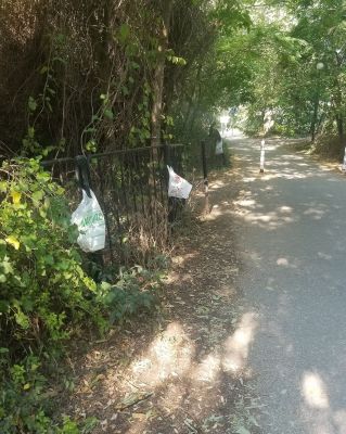 На алеята липсват кошчета, но има един възрастен човек, който закача торбички и чували по храсти и дървета, а после минава и ги изпразва