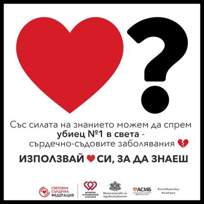 Дружеството на кардиолозите в България (ДКБ) стартира Национална информационна кампания „Използвай сърцето си, за да знаеш“ в Световния ден на сърцето 29 септември за четвърта поредна година. Тя ще се проведе в партньорство с Министерството на здравеопазването, Българското дружество по интервенционална кардиология, Съсловното сдружение по кардиостимулация и електрофизиология, Българската лига по хипертония и Асоциацията на студентите по медицина в България (АСМБ).