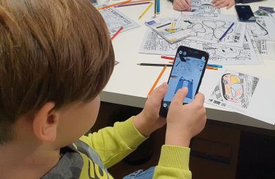 В лабораторията обогатена реалност курсистите ще се запознаят с една от най-иновативните технологии, още позната като Augmented Reality. В нея децата ще оцветяват картинки, а след това ще ги съживяват с помощта на специално приложение за разширена реалност. А някои от рисунките дори се превръщат в игри, които могат да играят.