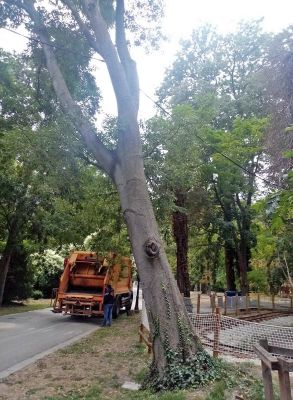 Режат опасно дърво в Морската градина днес