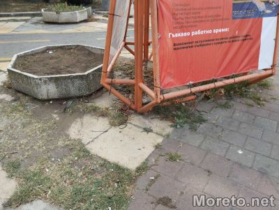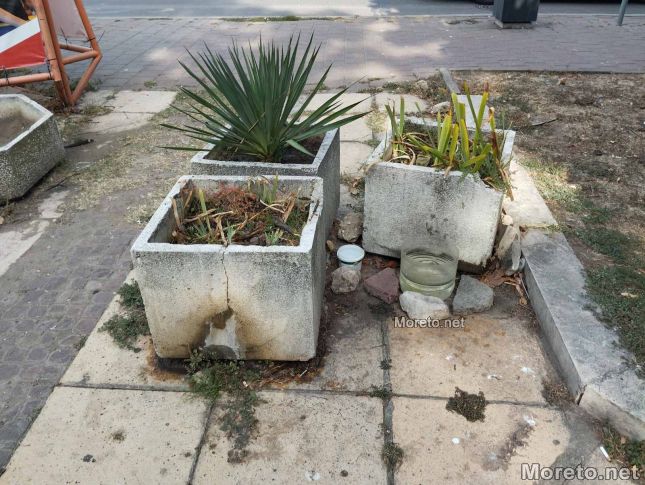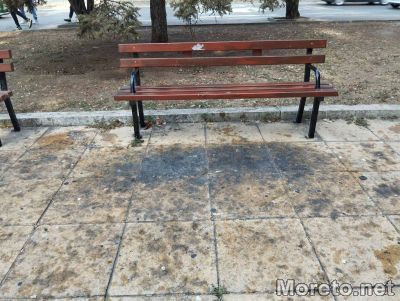 Точно срещу перголата плочките продължават да стават все по-пропити и напластени с мазнотия и мръсотия заради дюнерите, които се хапват на близките пейки. Навсякъде има изпочупена настилка и елементи от инфраструктурата.