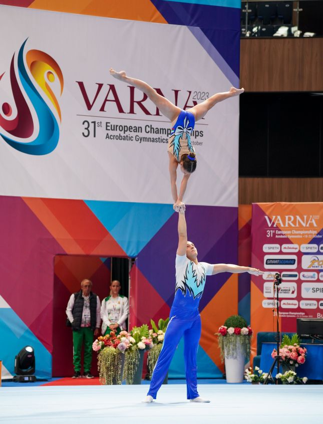 Мъжка и смесена двойка на България на финал в многобоя на Европейското първенство по спортна акробатика във Варна