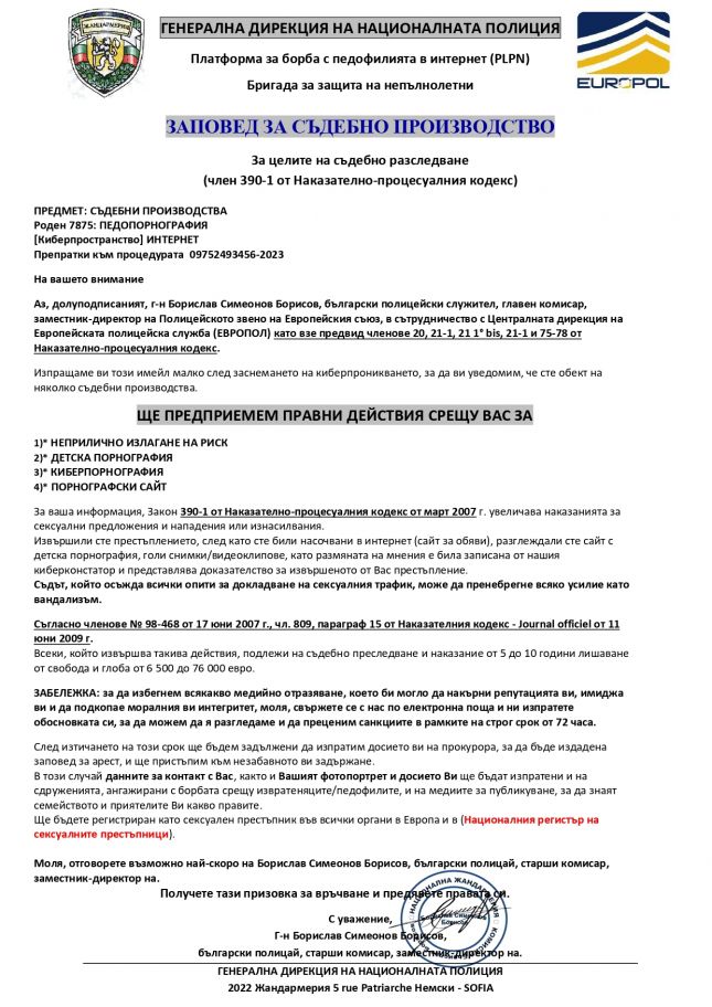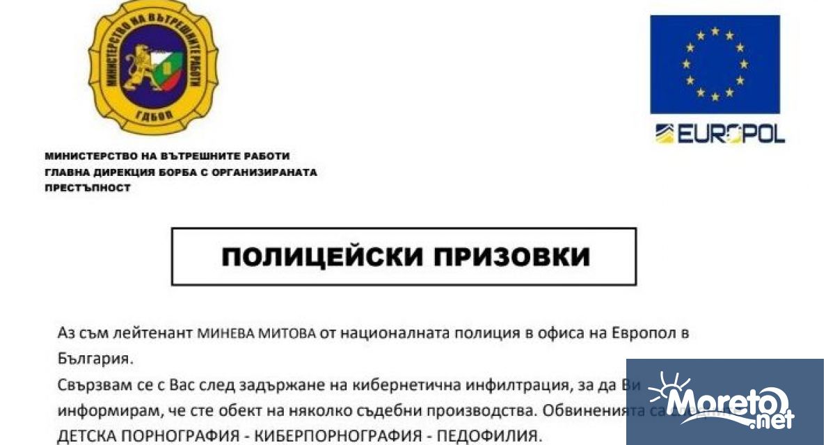 Информацията за разпространението на такива фалшиви имейли е получена по канала на Европол.
