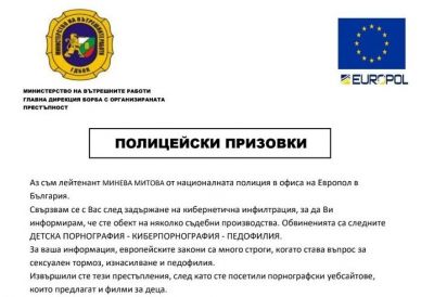 Дирекция „Международно оперативно сътрудничество“ (ДМОС) към МВР предупреждава за разпространението на измамни имейли от името на официални европейски или национални правоохранителни институции.