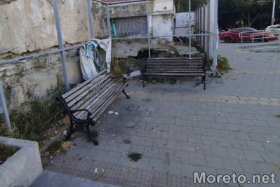Кътът за отдих до Юнашкия салон, който бе създаден преди четири години, е оставен на произвола. Видът му става все по-отблъскващ, видя репортер на Moreto.net.