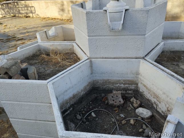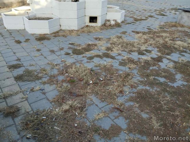 Фонтанът е центъра на пространството продължава да не функционира от поне година. Пълен е с мръсотия и отпадъци.