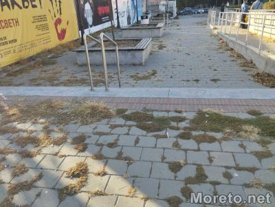 Избуялата растителност между плочки павета на места сякаш почти е скрила настилката. Плевели и треви растат не само на площ, но и на височина.