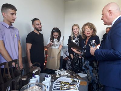 На изложбени щандове ученици от паралелки с дуално обучение от 11 професионални гимназии показаха готови изделия и работни процеси, които прилагат в обучението чрез работа.