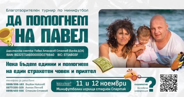 Организиран е и благотворителен турнир, който ще се проведе на 11 и 12 ноември (събота и неделя). Таксата за участие е 100 лева. Приходите, събрани от надпреварата, също ще отидат за лечението на Павел.
