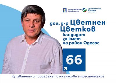 Обръщам се към всички варненци с призив да ме подкрепят на втория тур на изборите, за да дадем шанс на града и на най-красивата част от него-„Одесос“, за промяна и развитие! Варна и централната му част се нуждаят от бърз възход в нов мащаб .