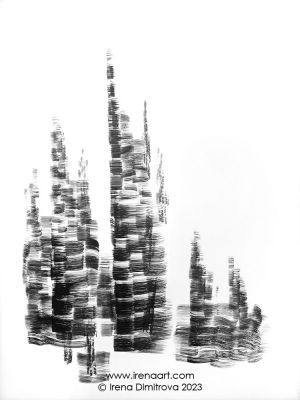 Изложбата е условно разделена на две смислови и визуални части – докосването до природата, чрез рисуването от натура, и дистанцирането от нея, чрез работи, създадени в ателието.