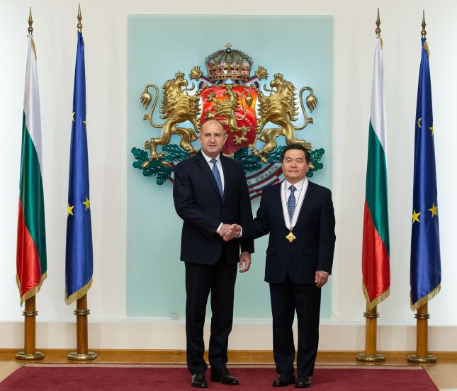 Президентът Радев удостои посланика на Китай у нас Дун Сяодзюн с орден „Мадарски конник“