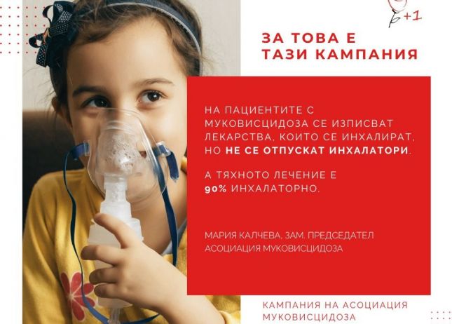 Кампания за набиране средства за закупуване на 50 инхалатора за лечението на деца и възрастни с муковисцидоза в цялата страна, организира Асоциация „Муковисцидоза“. В Международния ден за борба със заболяването, 21 ноември, за инициативата споделя зам. - председателят на асоциацията Мария Калчева, научи Moreto.net.