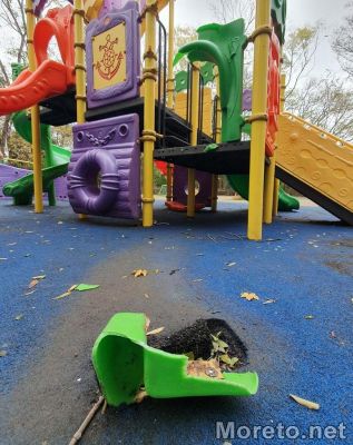 Детска площадка в Морската градина във Варна е станала обект на вандалска проява. Репортерска проверка на Moreto.net установи, че е счупена една от пързалките на голямата площадка в близост до Детския кът.