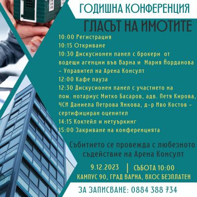 Пълната програмa и участниците в “ Гласът на имотите” може да разгледате и тук https://arenaconsult.bg/glasat-na-imotite-konferentsiya-za-pazara-na-nedvizhimi-imoti-vav-varna/