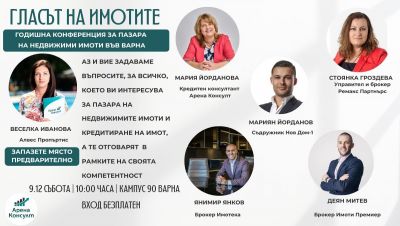 “Гласът на имотите” се организира от екипа на водещата агенция за кредитно консултиране Арена Консулт и ще събере водещи брокери, собственици на агенции за недвижими имоти, специалисти по кредитиране на имоти.