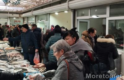Голямо струпване на хора има както на самия рибен пазар, така и край търговските обекти до него, които също предлагат риба.