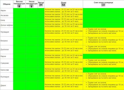 През следващото денонощие валежите ще продължат и ще обхванат цялата страна. На много места ще са значителни по количество. Още преди обяд в планинските райони и на отделни места в Североизточна България дъждът ще преминава в сняг, а до края на деня мокър сняг ще завали и на много места в останалата част от страната. Привечер ще започне да се образува снежна покривка. Вятърът ще се ориентира от север-североизток, ще е умерен, в Източна България - временно силен.