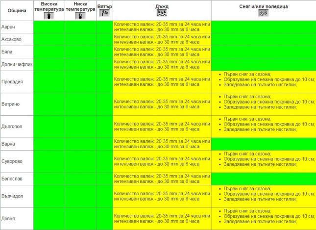 За утре е в сила жълт код за значителни валежи във Варна и областта. Ще има значителни валежи с количества 20-35 mm. Дъждът ще преминава в сняг.