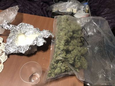 При претърсване на имот, който обитава извършителят, полицаите намерили около половин килограм марихуана, над 100 г метамфетамин и малко количество кокаин, потвърдено от направената експертна справка, две електронни везни и голямо количество празни полиетиленови пликчета, приготвени за продажба.