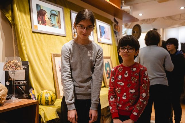 Открихме я тържествено снощи, с което засилихме празничното усещане в очакване на Коледа. Единственото разочарование на екипа ни бе, че не успя лично да поздрави двамата - те отсъстваха поради училищни ангажименти. Това е третата самостоятелна изложба на 13-годишните брат и сестра в арт салона в Съдебната палата и 16-та поред на младите автори на „Дедал“ в Апелативния съд.