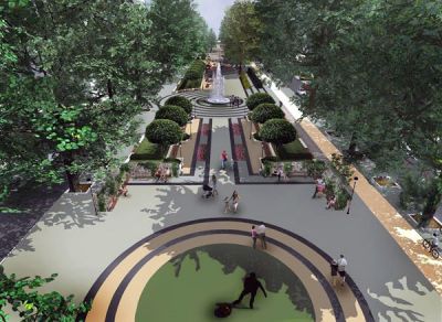 Целта е цялата пешеходна зона да бъде свободно отворена във всички посоки и да няма ограничаващи елементи, обясниха проектантите. В полето под бул. „Левски“ предвиждат оформянето на зелено поле, символизиращо футболно игрище, което да е преходно във всички посоки и да е с големина 10 на 30 метра. В него да бъдат поставени метални скулптури изобразяващи футболна врата, топка и футболист. Детската зона ще бъде с площ 380 кв.м., а кътът за тихи игри ще предлага възможност за игри на табла и шах. Там възрастните хора ще могат да отдъхват на спокойствие под сянката на запазените стари чинари.