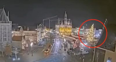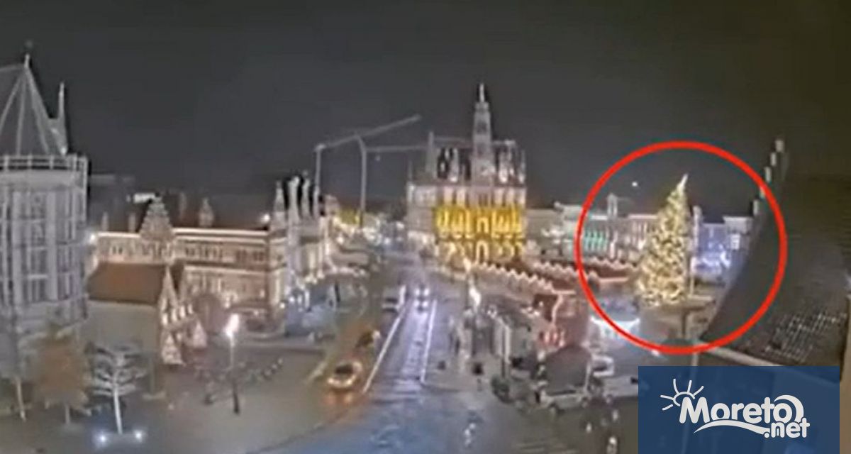 Кадри от охранителни камери в белгийските новинарски медии показват ярко осветена 20-метрова (66 фута) коледна елха, която бавно се накланя, след което се срутва до коледен базар в града, източно от Брюксел, в четвъртък, когато въртележка се обърна историческия пазарен площад.