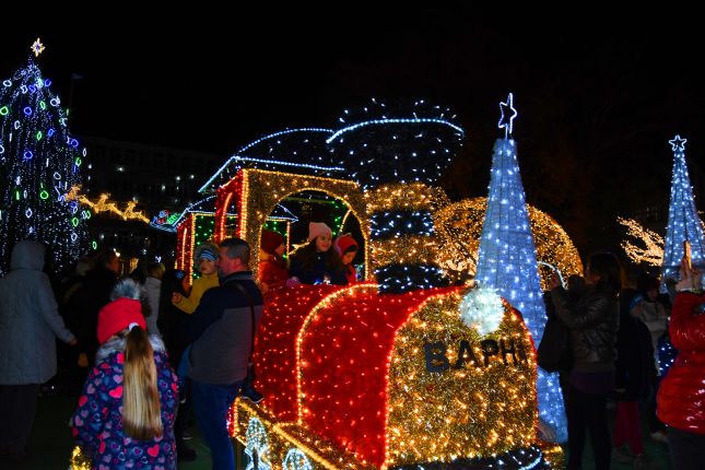 Затова се наложи в спешен порядък да се ползва наличната и да се добавят нови декоративни елементи – украса на живата Коледна елха на пл. „Независимост“, добавени светещи елементи на пешеходната част на ул. „Княз Борис“, както и орнаменти до градинката до Икономическия техникум и на трите пешеходни пасарелки на бул. „Васил Левски“.