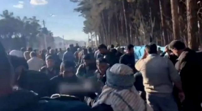 Видео, разпространено онлайн, показва няколко тела на път. Съобщава се, че стотици хора са вървели към гробницата в сряда като част от церемония в памет на генерал Солеймани, който беше убит при атака на американски дрон в съседен Ирак през 2020 г.