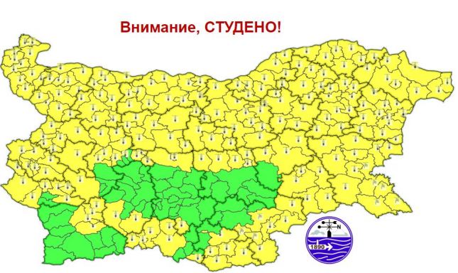 През нощта в почти цялата страна ще вали сняг. В Северна България и планинските райони ще се образува снежна покривка. Утре валежите ще отслабнат, в Източна България и крайните южни райони до около обяд, а до вечерта почти в цялата страна ще спрат. Ще духа умерен и силен вятър от север-североизток и ще има условия за виелици и навявания. Застудяването ще продължи и дневните температури, в повечето райони ще са с обратен или почти без дневен ход, към 14 часа ще са предимно между минус 5° и 0°, в София - около минус 3°.