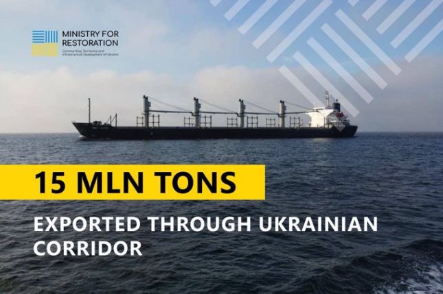 За пет месеца Украйна е изнесла почти 15 млн. тона товари през своя коридор в Черно море. Това обяви вицепремиерът Александър Кубраков.