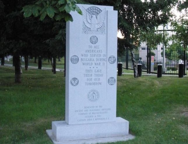 Посланието е монументът, дарен от Стародавната и почитаема Масачузетска артилерийска рота, да бъде прибран зад оградата на дипломатическото представителство, и да се почита паметта на жертвите на американските бомбардировки в България през миналия век.