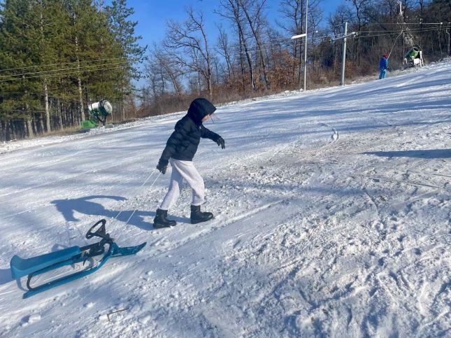 Температурите на северния склон на Кошу баир, където е пистата, продължават да са около нулата дори през деня, което прави снежното приключение гарантирано.