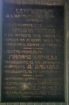 Строежът на сградата на ел. централата започва през 1912 г. и се ръководи от арх. Д. Дабков. Тя се намира на старите улици „Червенска“ и „Царибродска“ и обхваща застроена площ 900 кв. м., 600 от които само за машинната зала. В нея са монтирани три дизелови двигателя на фирмата „Зулцер & Винтертур – Швейцария“ всеки с 4 цилиндъра, водно охлаждане и мощност 270 конски сили. Според традицията те са кръстени с женски имена: първият носи името Влада – съпругата на инж. Н. Тотев; вторият носи името Цветана – съпругата на кмета Ал. Василев; третият носи името Анна – съпругата на инж. М. Карчев.