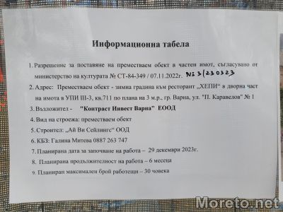 "Там има издадено разрешение за изграждане на преместваем обект, класифициран като „зимна градина“. Да, сградата е архитектурен паметник и е под опеката на Министерство на културата, но именно местната власт в лицето на Община Варна и кметство „Одесос“ съгласуват с държавата настоящите строителни дейности през ноември, 2022 г.", посочи кметът.