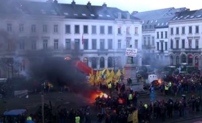 Фермери хвърляха яйца и камъни по Европейския парламент и предизвикваха пожари в опит да окажат натиск върху лидерите на ЕС преди среща на върха днес, предава "Ройтерс".