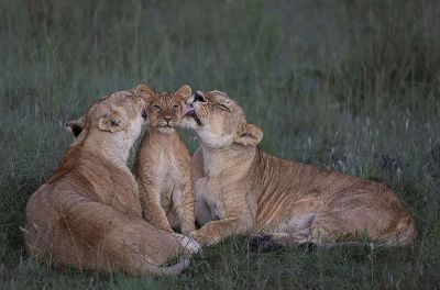 Две лъвици отглеждат малки в Масай Мара, Кения
