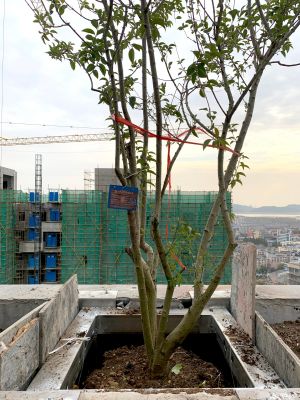 Зеленината на Вертикалната гора, избрана от местни видове, се състои от 404 дървета (основните дървета са Ginkgo biloba, Osmanthus fragrans, Acer griseum, Ligustrum lucidum и Chimonanthus praecox); 4620 храсти (основните средни и малки храсти са Hibiscus mutabilis, Elaeagnus pungens, Nandina domestica и Euonymus alatus); 2408 квадратни метра многогодишна трева, цветя и увивни растения като Ophiopogon bodinieri, Sedum lineare и Liriope spicata).