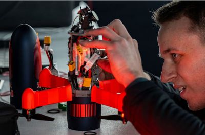 - Електрониката и двигателите са доста стандартни, готови компоненти, но разговаряхме с доставчиците с молба за най-новия им неиздаван хардуер. Например имахме нужда от нещо, което може да поеме повече обороти на двигателя и те го имаха, след това цялата външна структура на самия дрон беше проектирана от нулата от нас. Направихме много 3D печат, както за прототипиране, така и за крайния продукт. И има някои въглеродни CNC неща, които също направихме сами.