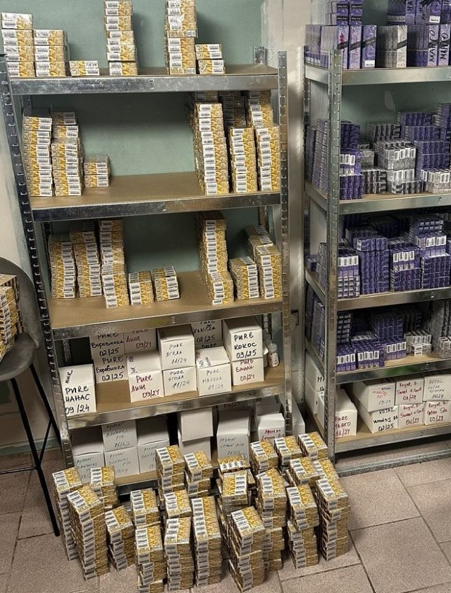 При друга проверка, извършена на 28 февруари в складово помещение към частен жилищен имот на територията на град Варна, митническите служители откриват 13 086 потребителски опаковки с никотинова течност за електронни цигари, също без български акцизен бандерол.