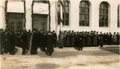 На освещаването цялата палата е украсена със зеленина и трикольори. На фасадата е опъната голяма лента с надпис: ”Собствени пощи имат само национално независимите народи”.