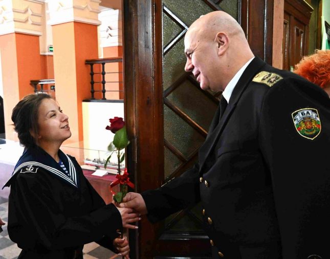 Над 50 дами от ВМС лично получиха цвете за 8 март от командващия на флота