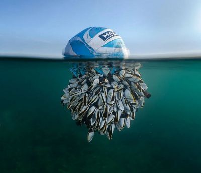 „Над водата е просто футболна топка. Но под водолинията има колония от същества. Футболната топка беше изхвърлена в Дорсет след огромно океанско пътуване през Атлантическия океан“, казва Сталкър.