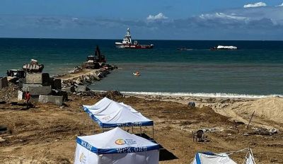 Газа няма функциониращо пристанище, така че импровизиран кей, излизащ от бреговата линия, е построен от екипа на WCK, използвайки отломки от разрушени сгради.