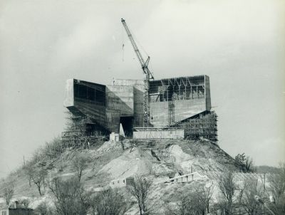 Първата копка на строежа е през 1974 година. В продължение на 4 години с труда на 27 хил. души са излети над 10 000 тона бетон заедно с 1000 тона арматура. Към огромната конструкция отвеждат 301 стъпала. След построяването 180 прожектора осветяват паметника. В бронзов куб под арката пък денонощно гори вечен огън. Склоновете на хълма са залесени с 20 хил. декоративни дървета и храсти, символизиращи падналите съветски войни.