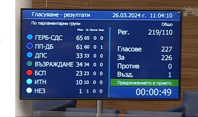 С 226 гласа "за" НС прие първия мандат за неуспешен (видео)