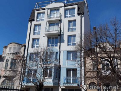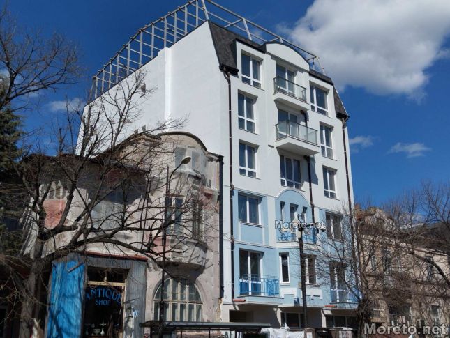 Дейностите по поредния надстроен архитектурен паметник във Варна приключват, видя репортер на Moreto.net. Фасадата на зданието привлича вниманието отдалеч със синия си цвят и височината, изпъкваща на фона на околните сгради.